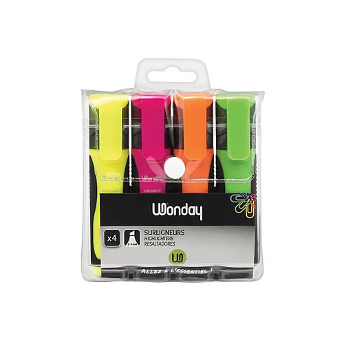 Surligneur WONDAY Pochette de 4 surligneurs pointe biseautée